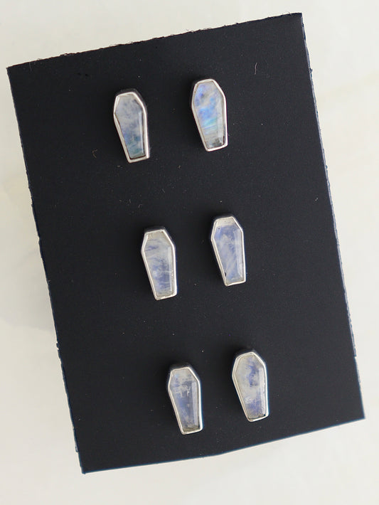 *Halloween* Rainbow Moonstone Coffin Earrings