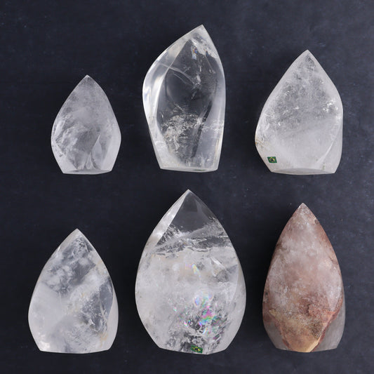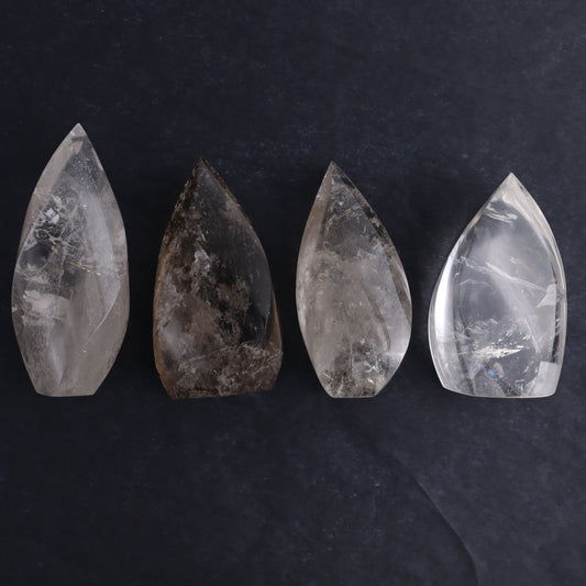Imperfect Clear and Smoky Quartz Flames Set of 4