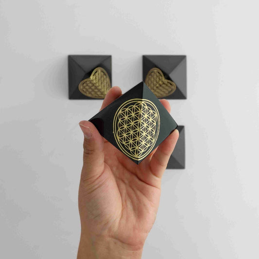 Closeout!Obsidian Pyramid Flower of Life