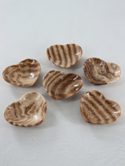 Chocolate Zebra Onyx Heart Bowls Set of 6