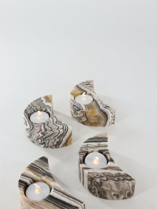 Yellow Zebra Onyx Star Candle Holders Set of 4