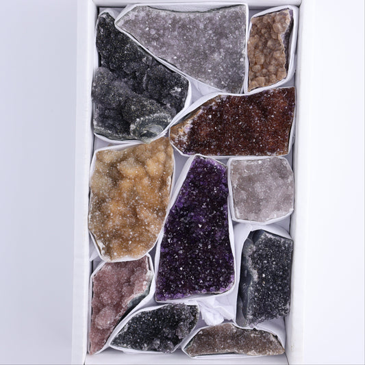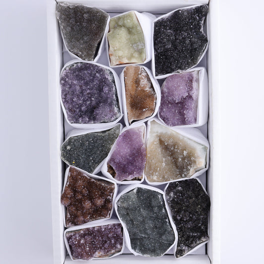 Uruguay Rainbow Amethyst Clusters Flat of 12