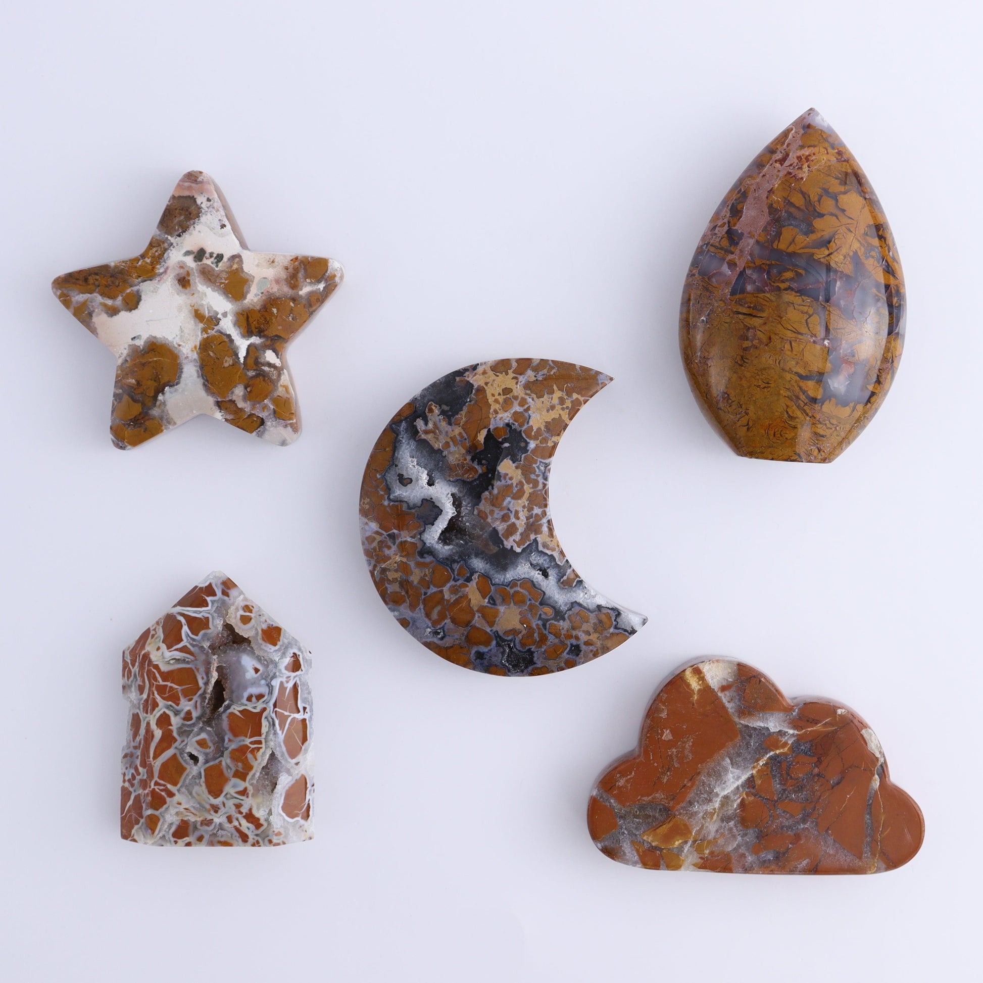 Brecciated Jasper Moons, Stars, Towers, Clouds, and Flames Set of 11