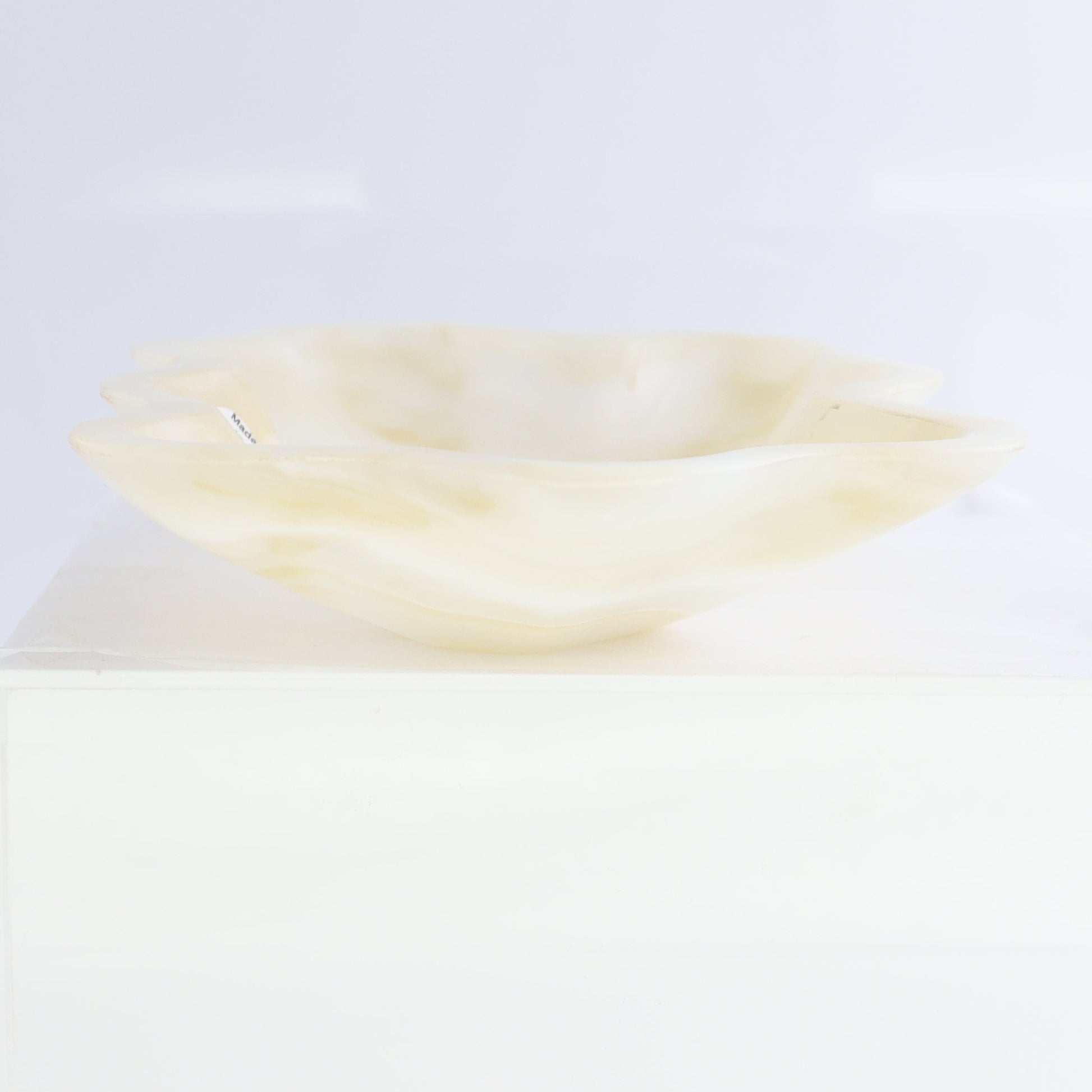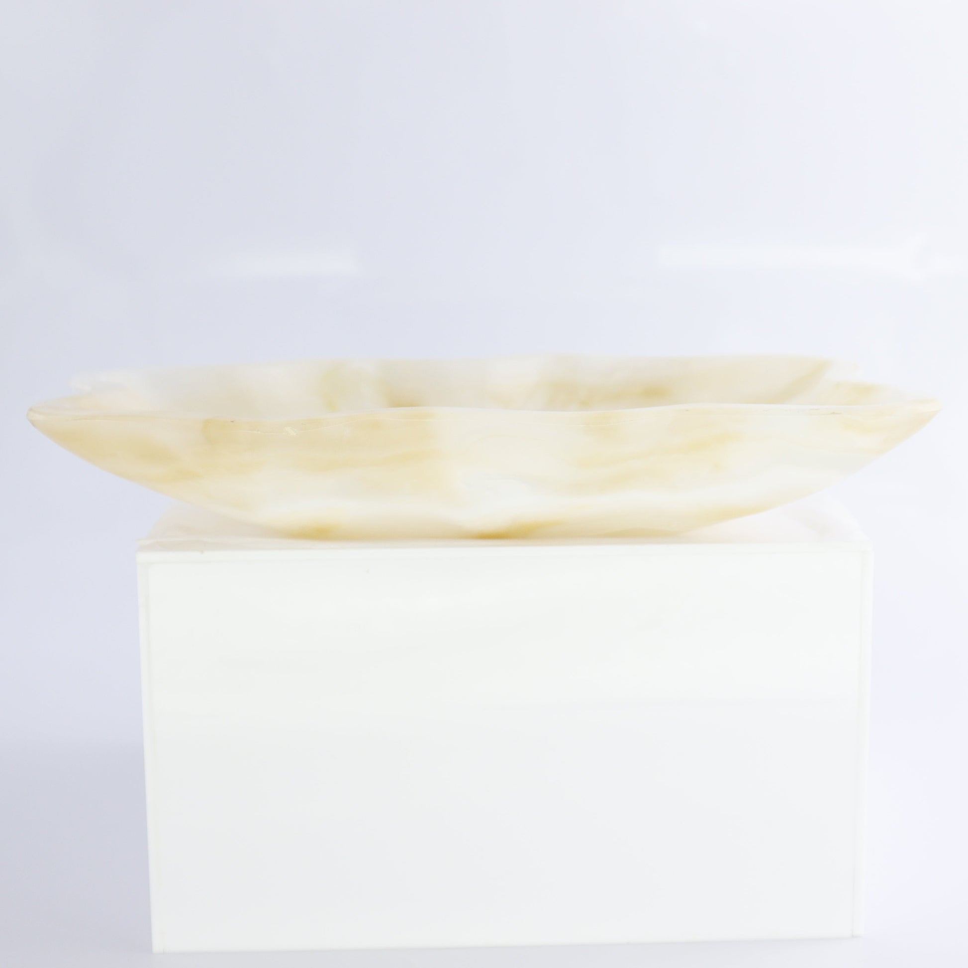 Elevate your decor with our Onyx Bowls, handcrafted from high-quality onyx in Mexico. Its elegant shape and unique color(s) add a touch of sophistication to any space. Perfect as a decorative accent; each bowl showcases the artistry of Mexican craftsmanship. The sleek, wide design makes it a versatile addition to both modern and traditional interiors. Enjoy the timeless beauty and artisanal quality of this exquisite piece.