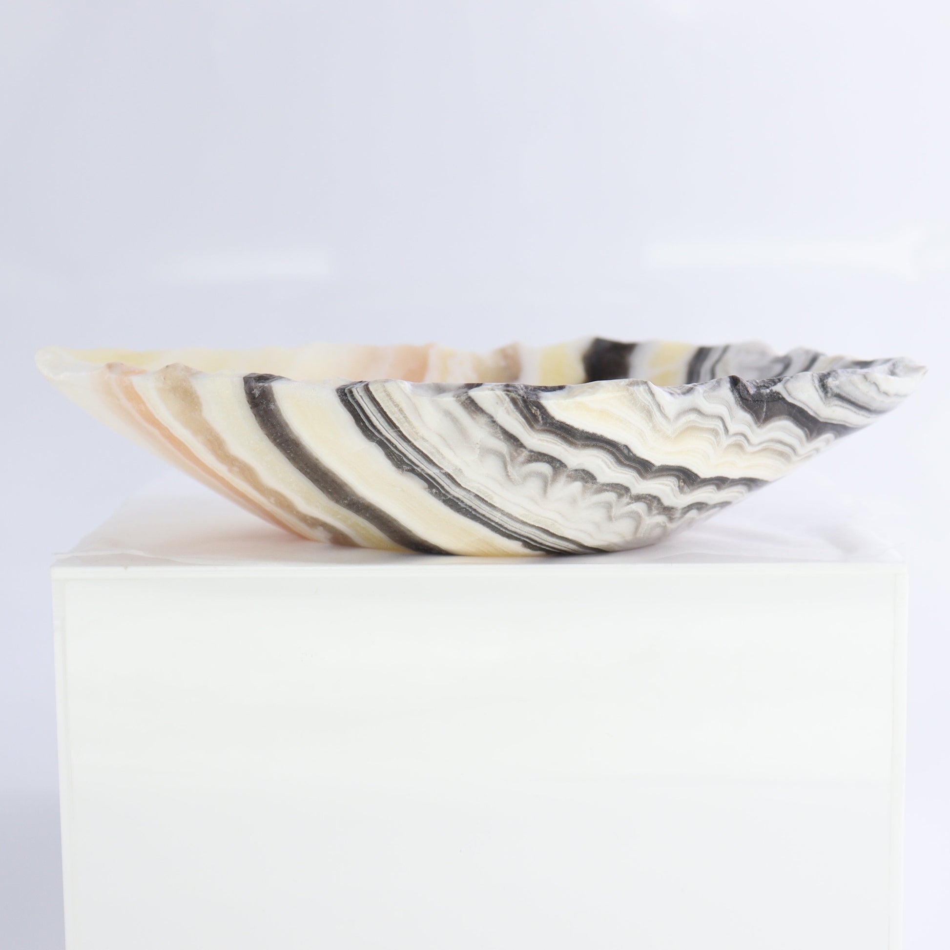 Elevate your decor with our Onyx Bowls, handcrafted from high-quality onyx in Mexico. Its elegant shape and unique color(s) add a touch of sophistication to any space. Perfect as a decorative accent; each bowl showcases the artistry of Mexican craftsmanship. The sleek, wide design makes it a versatile addition to both modern and traditional interiors. Enjoy the timeless beauty and artisanal quality of this exquisite piece.