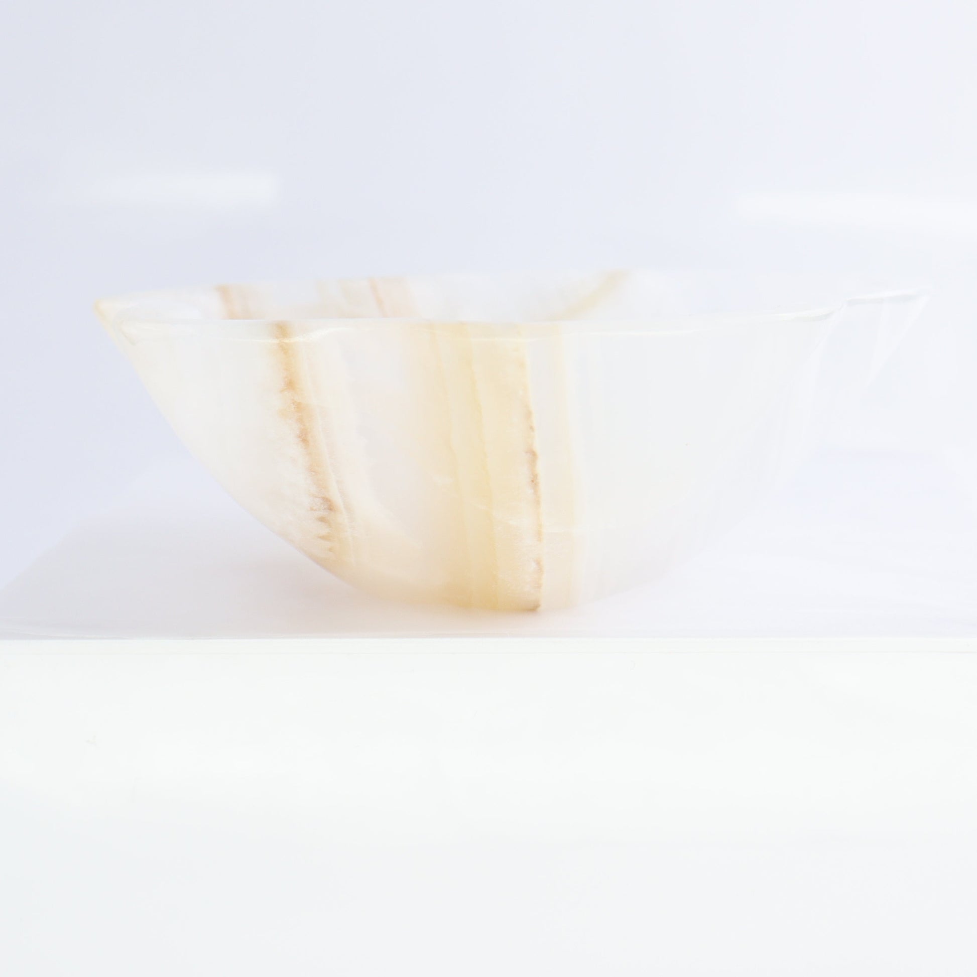 Elevate your decor with our Onyx Bowls, handcrafted from high-quality onyx in Mexico. Its elegant shape and unique color(s) add a touch of sophistication to any space. Perfect as a decorative accent; each bowl showcases the artistry of Mexican craftsmanship. The unique designs makes it a versatile addition to both modern and traditional interiors. Enjoy the timeless beauty and artisanal quality of this exquisite piece.