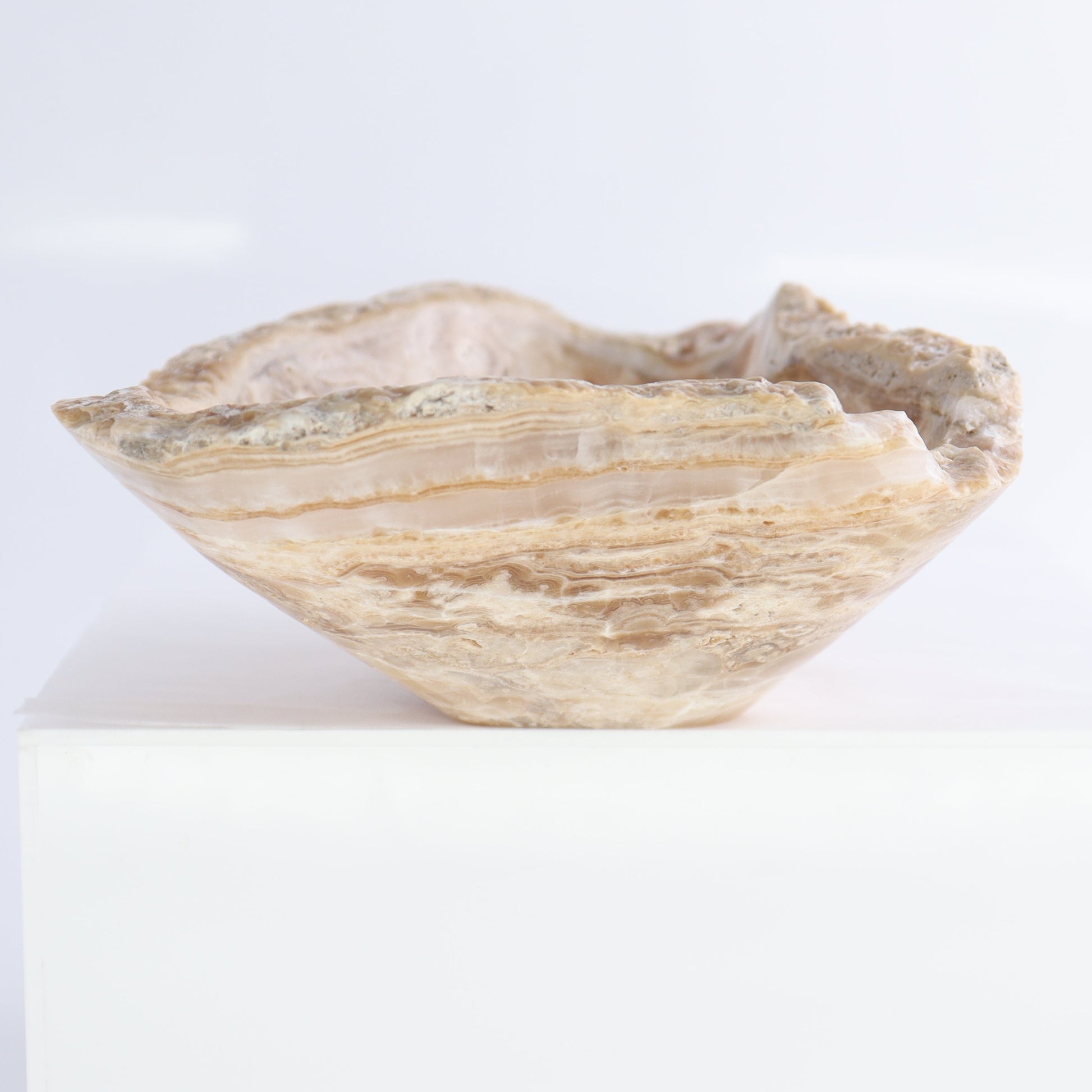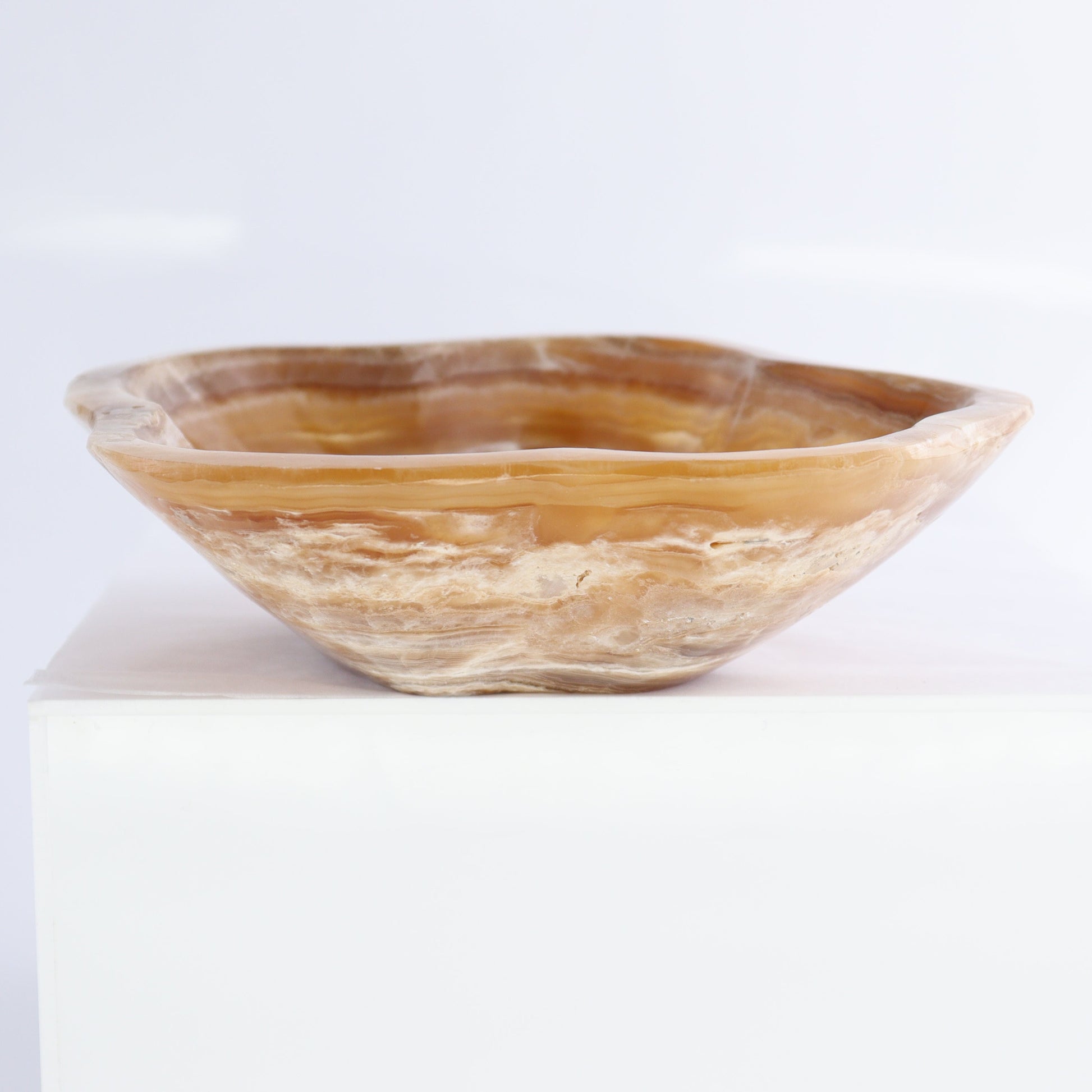 Elevate your decor with our Onyx Bowls, handcrafted from high-quality onyx in Mexico. Its elegant shape and unique color(s) add a touch of sophistication to any space. Perfect as a decorative accent; each bowl showcases the artistry of Mexican craftsmanship. The unique designs makes it a versatile addition to both modern and traditional interiors. Enjoy the timeless beauty and artisanal quality of this exquisite piece.
