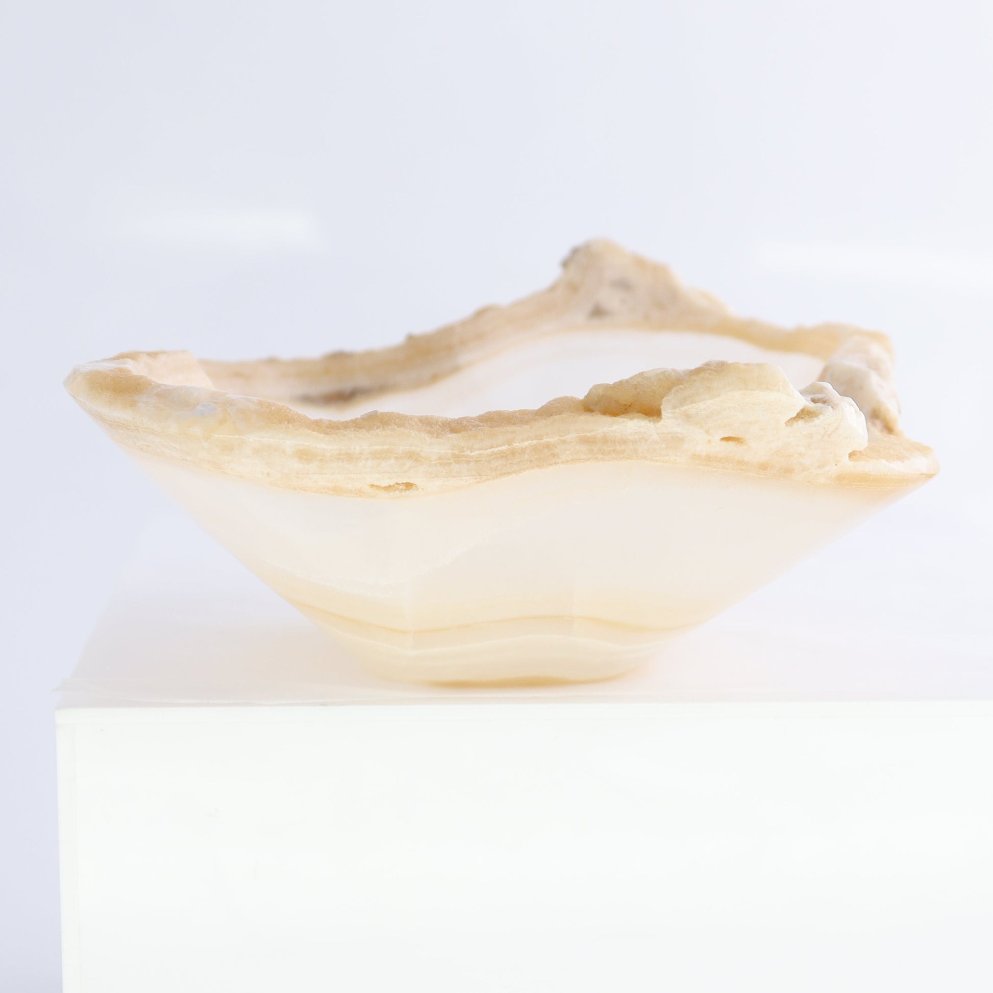 Elevate your decor with our Onyx Bowls, handcrafted from high-quality onyx in Mexico. Its elegant shape and unique color(s) add a touch of sophistication to any space. Perfect as a decorative accent; each bowl showcases the artistry of Mexican craftsmanship. The unique designs makes it a versatile addition to both modern and traditional interiors. Enjoy the timeless beauty and artisanal quality of this exquisite piece.