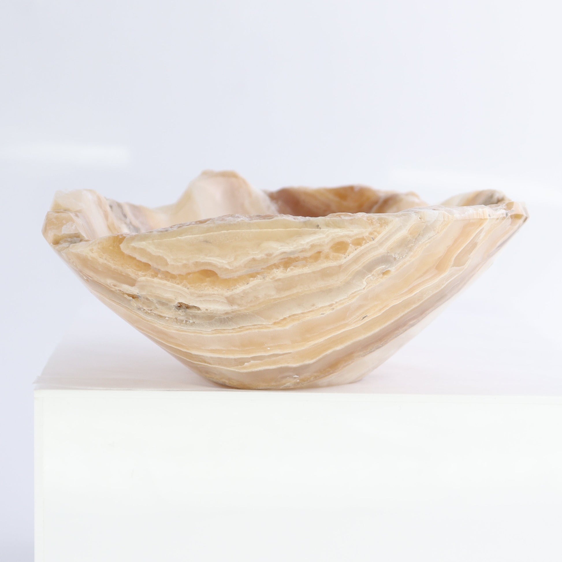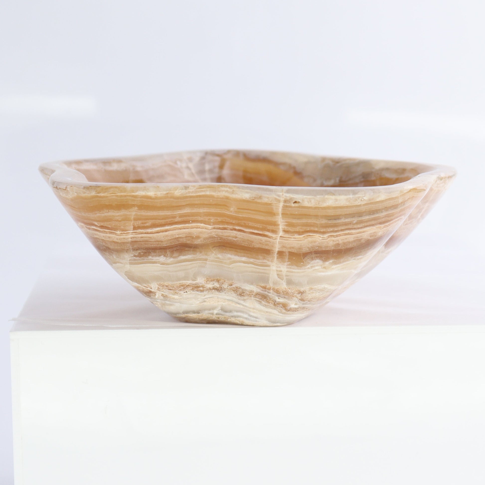 Elevate your decor with our Onyx Bowls, handcrafted from high-quality onyx in Mexico. Its elegant shape and unique color(s) add a touch of sophistication to any space. Perfect as a decorative accent; each bowl showcases the artistry of Mexican craftsmanship. The unique designs makes it a versatile addition to both modern and traditional interiors. Enjoy the timeless beauty and artisanal quality of this exquisite piece.