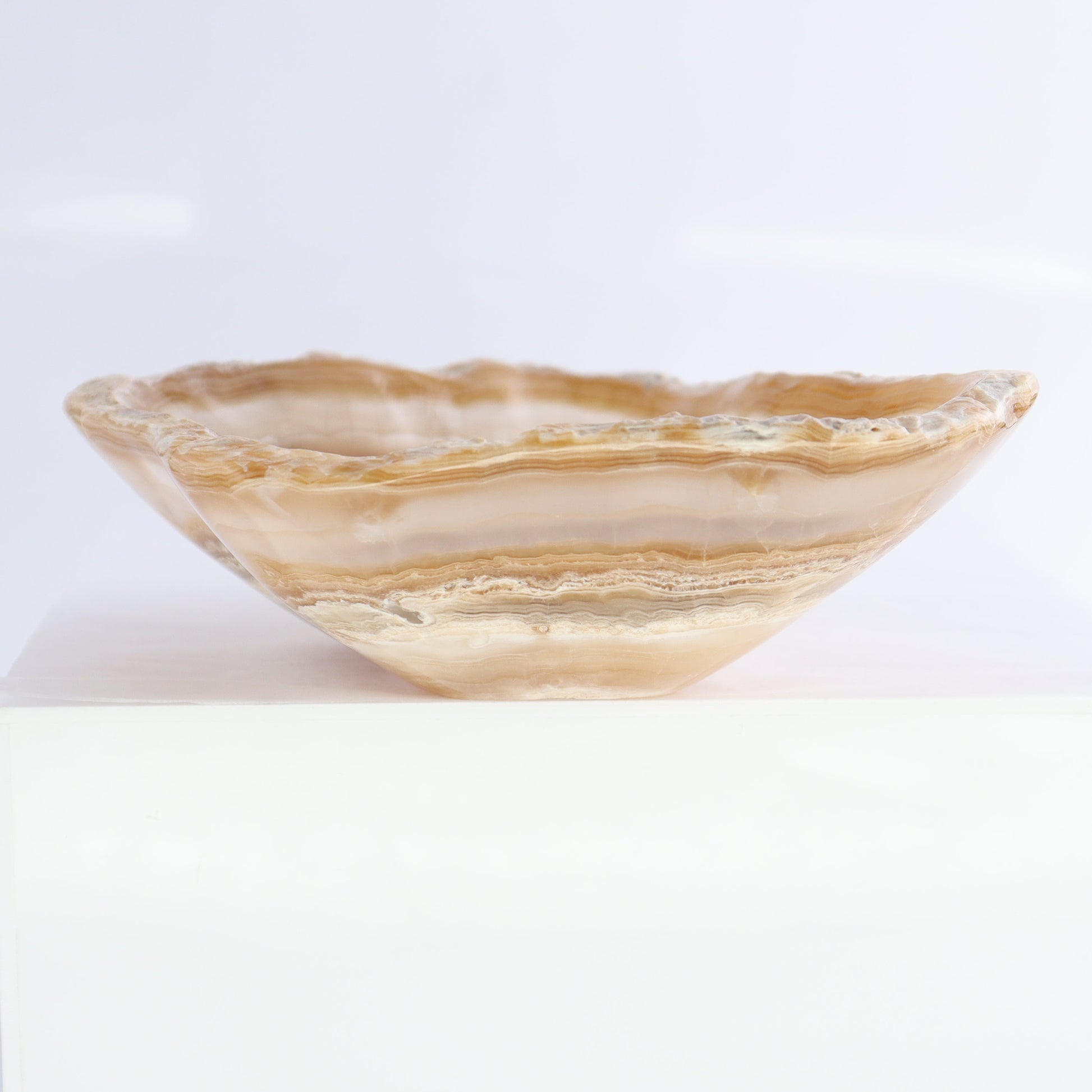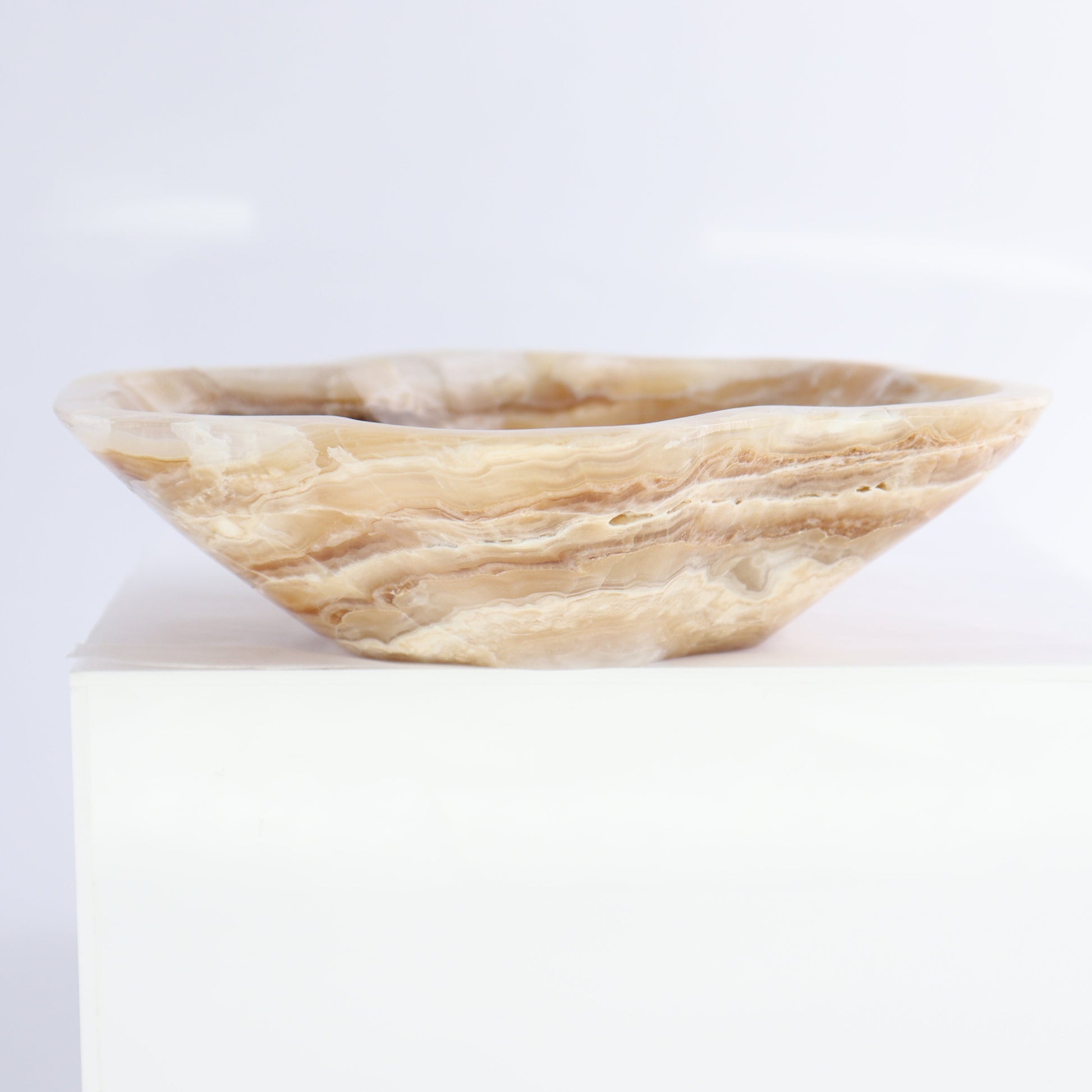 Elevate your decor with our Onyx Bowls, handcrafted from high-quality onyx in Mexico. Its elegant shape and unique color(s) add a touch of sophistication to any space. Perfect as a decorative accent; each bowl showcases the artistry of Mexican craftsmanship. The unique designs makes it a versatile addition to both modern and traditional interiors. Enjoy the timeless beauty and artisanal quality of this exquisite piece.
