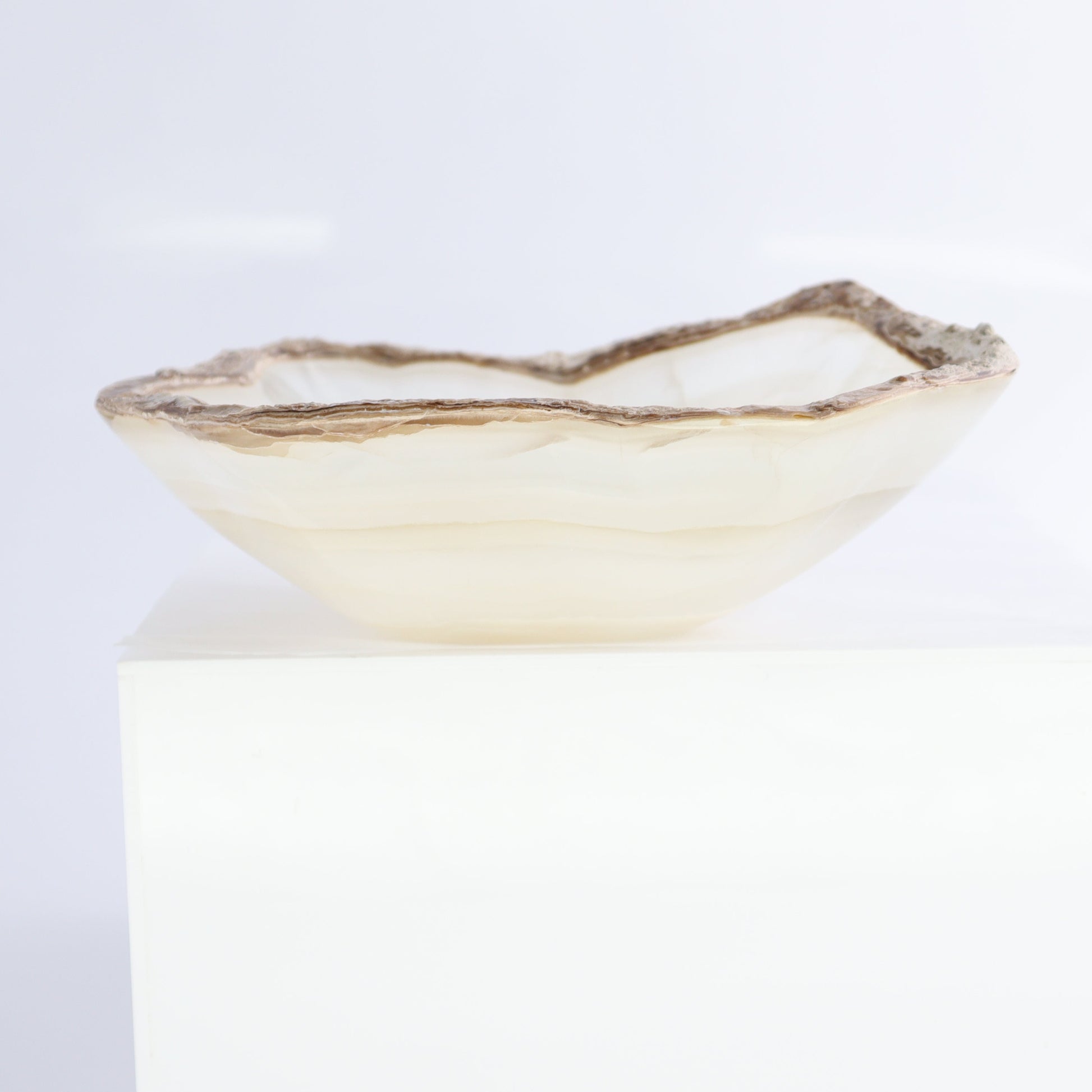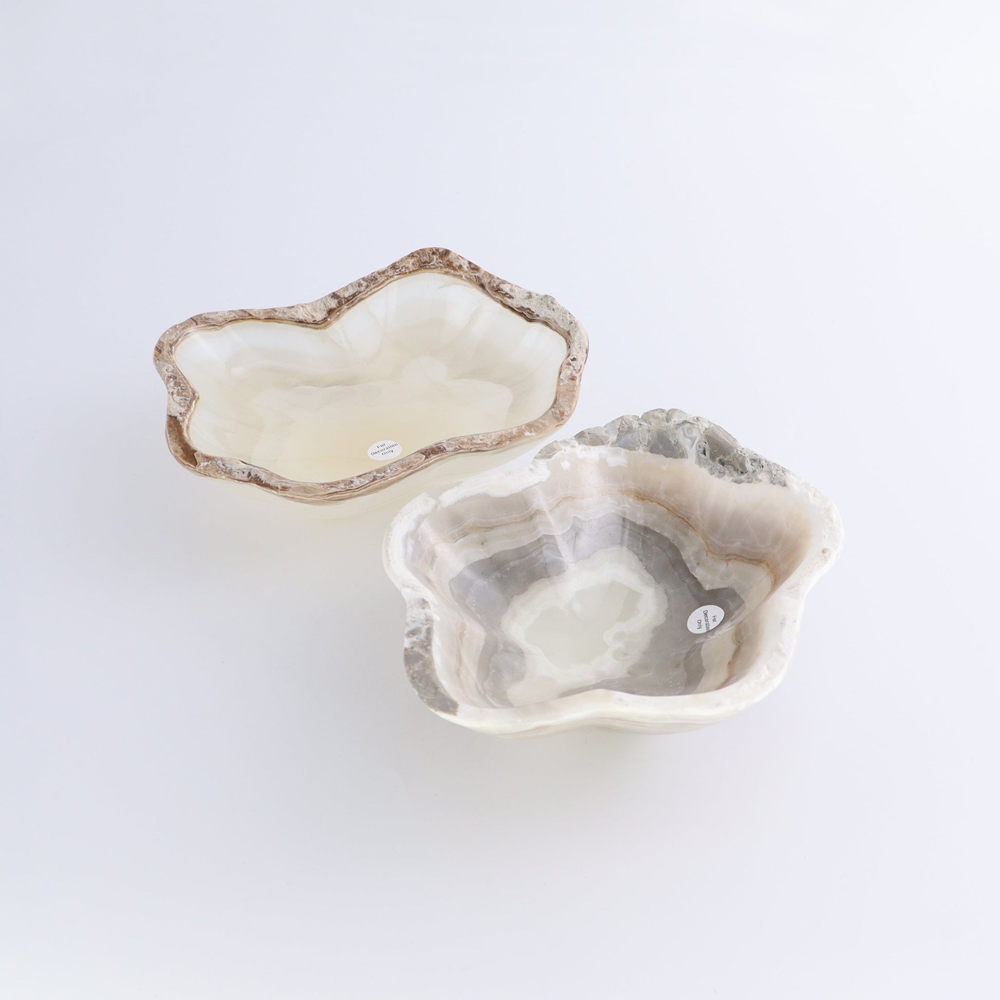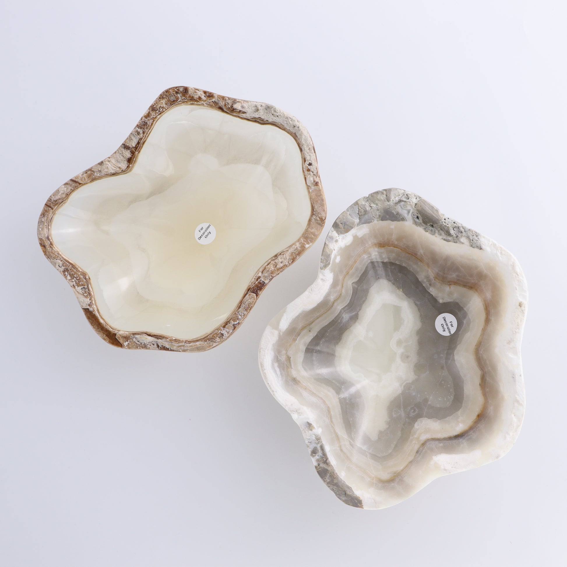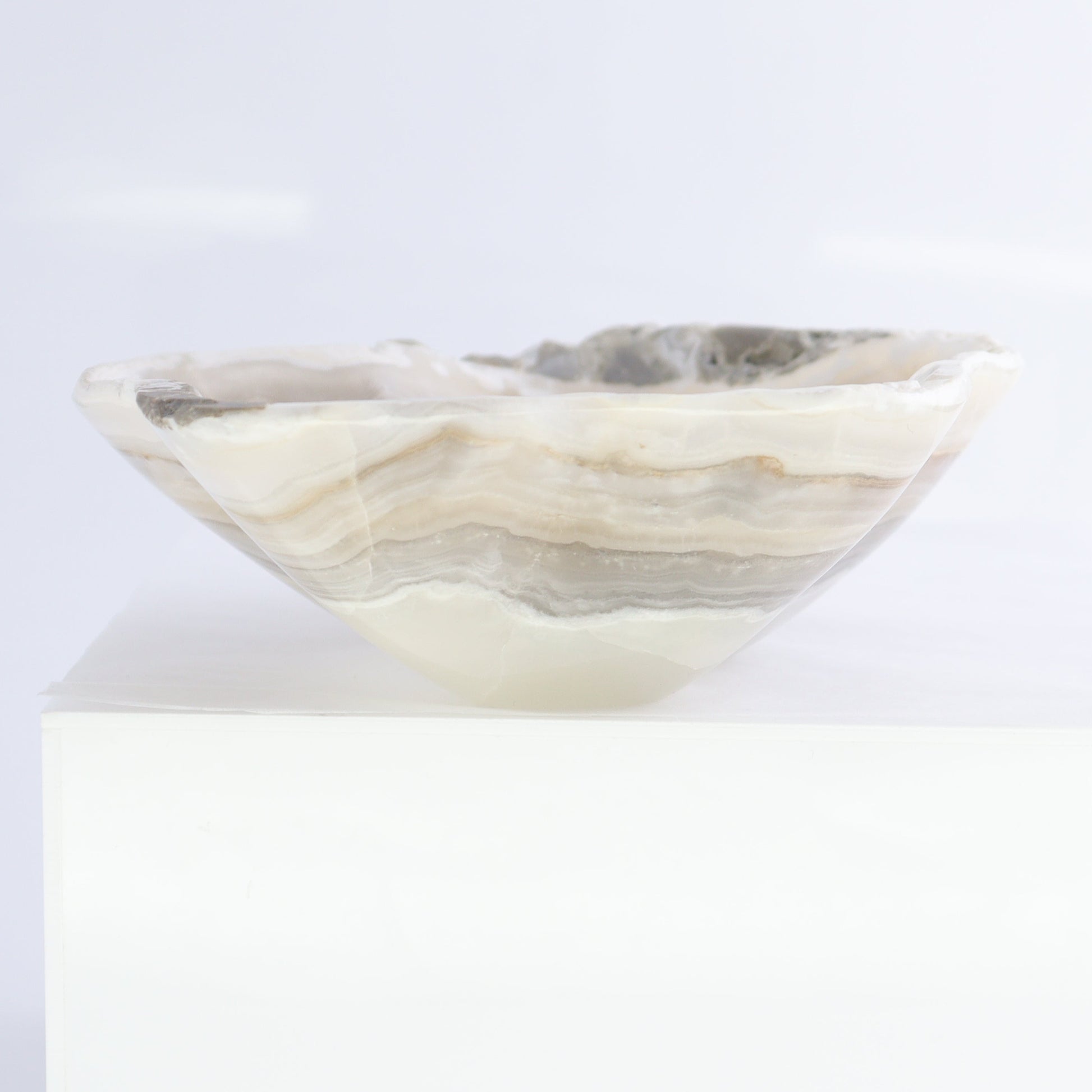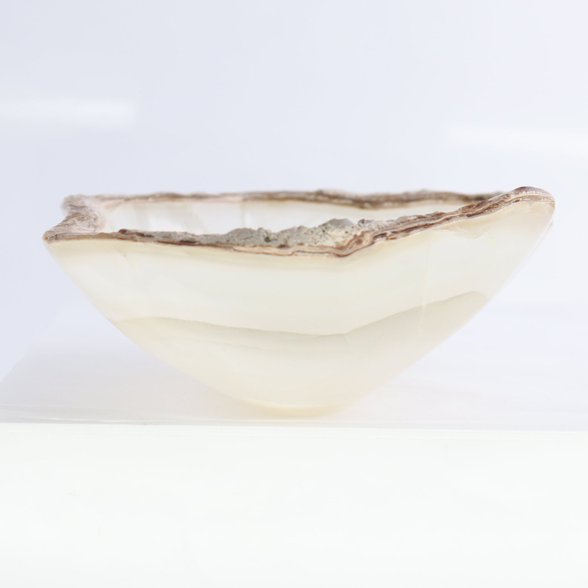 Elevate your decor with our Onyx Bowls, handcrafted from high-quality onyx in Mexico. Its elegant shape and unique color(s) add a touch of sophistication to any space. Perfect as a decorative accent; each bowl showcases the artistry of Mexican craftsmanship. The unique designs makes it a versatile addition to both modern and traditional interiors. Enjoy the timeless beauty and artisanal quality of this exquisite piece.